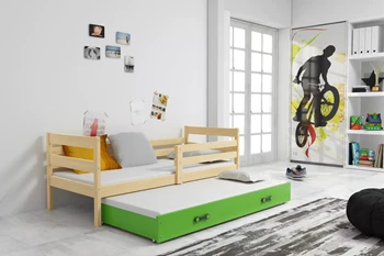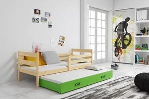 Ausziehbett für Jugendliche Erik, 80x190, mit Schublade, Kiefer/grün