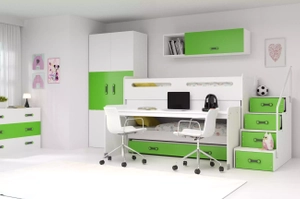 Hochbett für drei Personen Max 1, 80x200, mit Matratze und Schreibtisch, grün