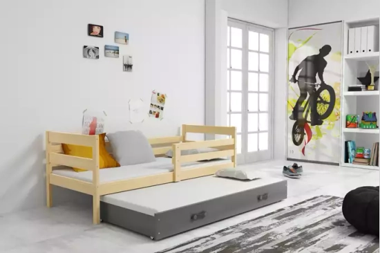 Ausziehbett für Jugendliche Erik, 90x190, mit Schublade, Kiefer/grau