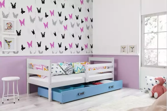 Jugendbett Erik, 90x190, mit Schublade, weiß/blau