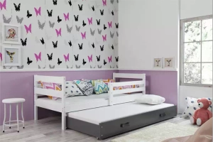 Ausziehbett für Jugendliche Erik, 90x190, mit Matratze und Schublade, weiß/grau