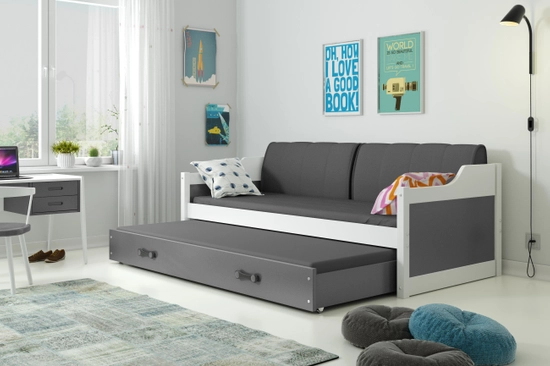 Ausziehbett für Jugendliche David, 90x200, mit Matratze und Schublade, weiß/grau