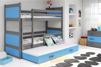 Etagenbett für drei Personen Richard, 90x200, mit Schublade, grau/blau