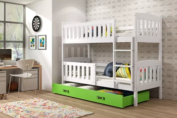 Stockbett für Jugendliche Jakob, 90x200, mit Matratze und Schublade, weiß/grün