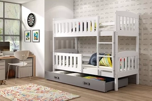 Stockbett für Jugendliche Jakob, 90x200, mit Matratze und Schublade, grau/weiß