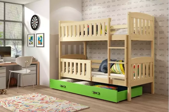 Stockbett für Jugendliche Jakob, 90x190, mit Matratze und Schublade, Kiefer/grün