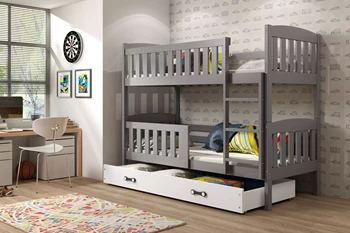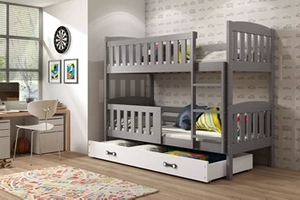 Etagenbett für drei Personen Jakob, 90x190, mit Matratze und Schublade, grau/weiß