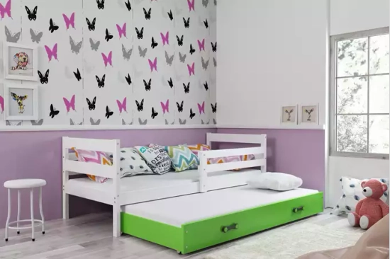Ausziehbett für Jugendliche Erik, 90x200, mit Schublade, weiß/grün