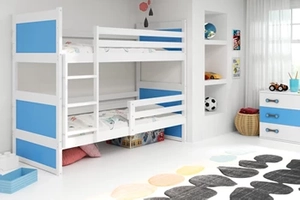 Stockbett für Jugendliche Richard, 90x200, mit Matratze, weiß/blau