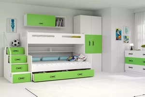Etagenbett für drei Personen Max 3, 120x200, mit Schublade, grün