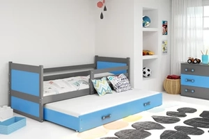 Ausziehbett für Jugendliche Richard, 90x200, mit Matratze und Schublade, grau/blau