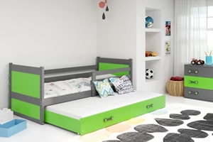 Ausziehbett für Jugendliche Richard, 90x200, mit Matratze und Schublade, grau/grün