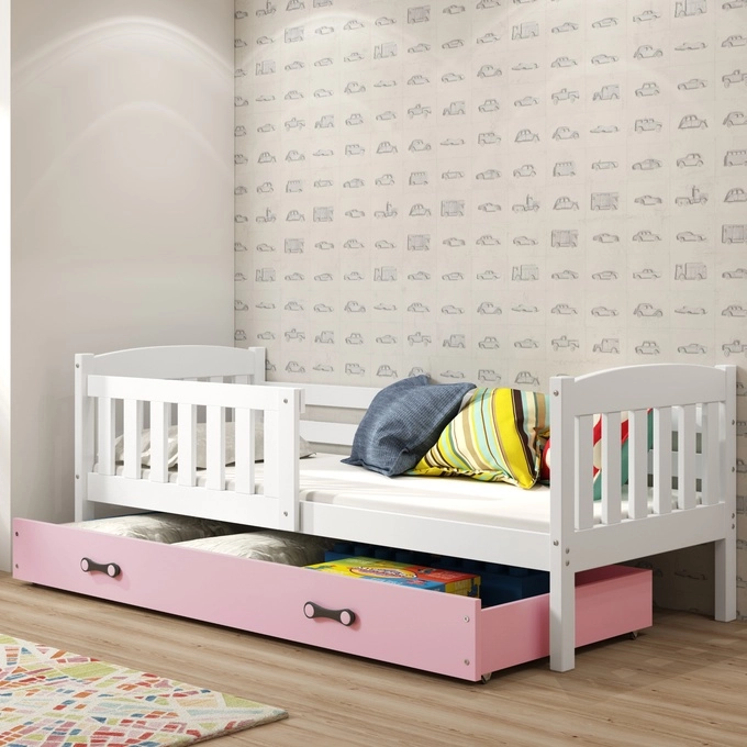 Kinderbett Jakob, 80x160, mit Schublade, weiß/rosa