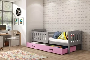 Kinderbett Jakob, 80x160, mit Matratze und Schublade, grau/rosa