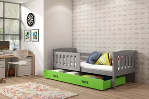 Kinderbett Jakob, 80x160, mit Matratze und Schublade, grau/grün