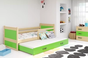 Ausziehbett für Jugendliche Richard, 90x200, mit Schublade, Kiefer/grün