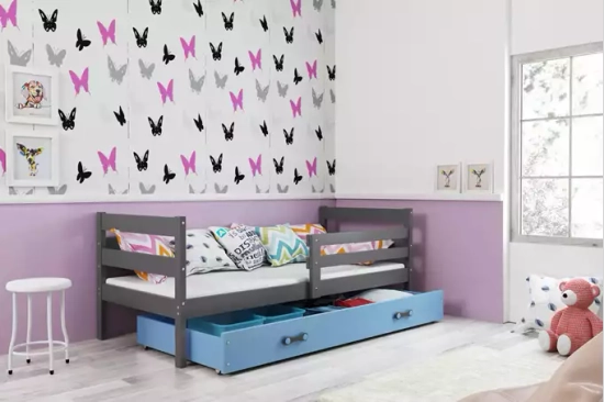 Jugendbett Erik, 90x190, mit Matratze und Schublade, grau/blau