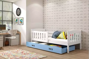 Kinderbett Jakob, 80x160, mit Schublade, weiß/blau