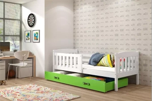 Kinderbett Jakob, 80x160, mit Schublade, weiß/grün