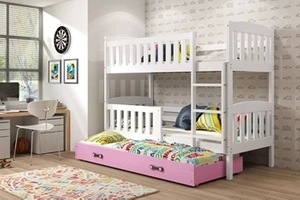 Etagenbett für drei Personen Jakob, 90x200, mit Schublade, weiß/rosa