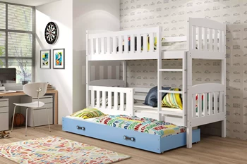 Etagenbett für drei Personen Jakob, 90x200, mit Schublade, weiß/blau