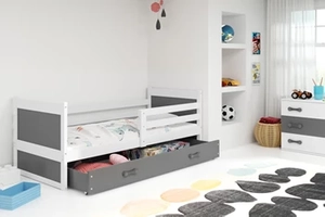Jugendbett Richard, 90x200, mit Matratze und Schublade, weiß/grau
