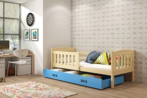 Kinderbett Jakob, 80x160, mit Schublade, Kiefer/blau