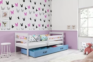 Jugendbett Erik, 90x200, mit Matratze und Schublade, weiß/blau