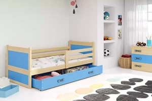 Jugendbett Richard, 90x200, mit Schublade, Kiefer/blau