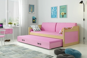 Ausziehbett für Jugendliche David, 90x200, mit Matratze und Schublade, Kiefer/rosa