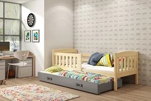 Ausziehbett für Jugendliche Jakob, 90x190, mit Schublade, Kiefer/grau