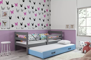 Ausziehbett für Jugendliche Erik, 90x200, mit Matratze und Schublade, grau/blau