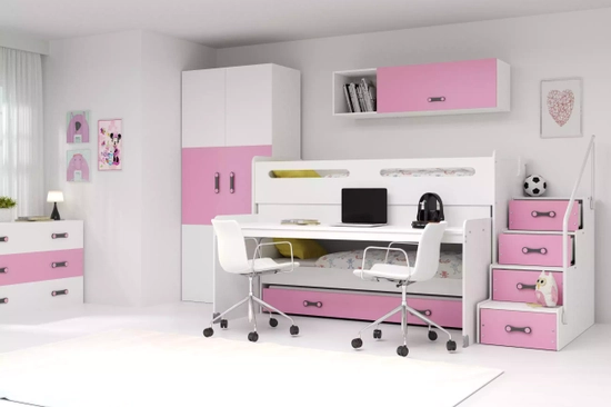 Stockbett für Jugendliche Max 3, 120x200, mit Schublade, rosa