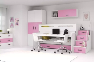 Jugendbett Max 4, 80x200, mit Schreibtisch, rosa