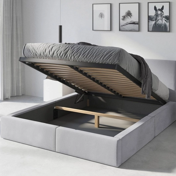 Es eignet sich sowohl als geräumiges Einzelbett als auch als komfortables Doppelbett, ideal für kleinere Wohnungen. Die gepolsterte Konstruktion macht es zur idealen Wahl für private Schlafzimmer, elegante Hotels oder Gästezimmer. Die Montage ist einfach und schnell – ganz ohne Fachmann.