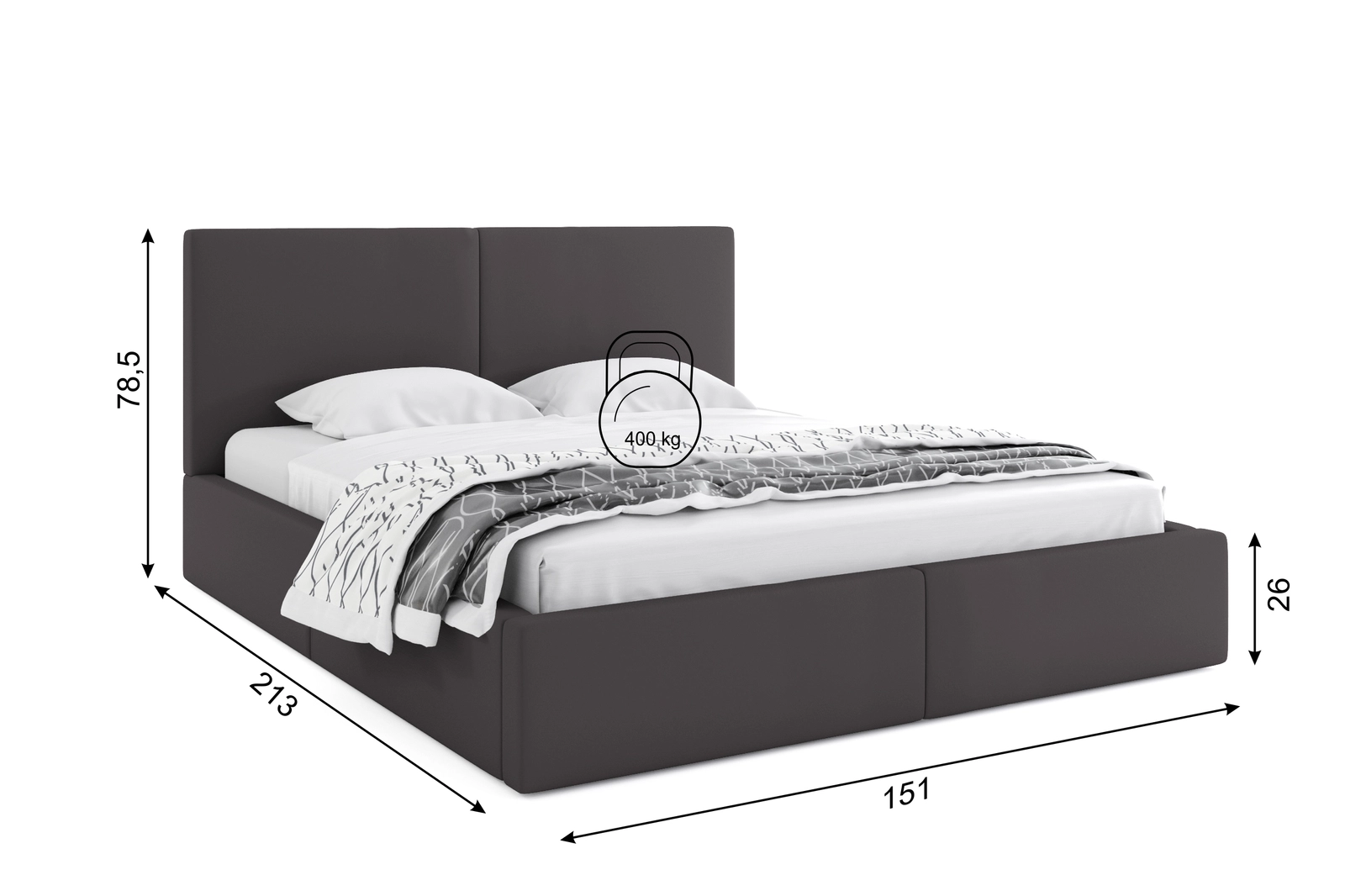 Es eignet sich sowohl als geräumiges Einzelbett als auch als komfortables Doppelbett, ideal für kleinere Wohnungen. Die gepolsterte Konstruktion macht es zur idealen Wahl für private Schlafzimmer, elegante Hotels oder Gästezimmer. Die Montage ist einfach und schnell – ganz ohne Fachmann.