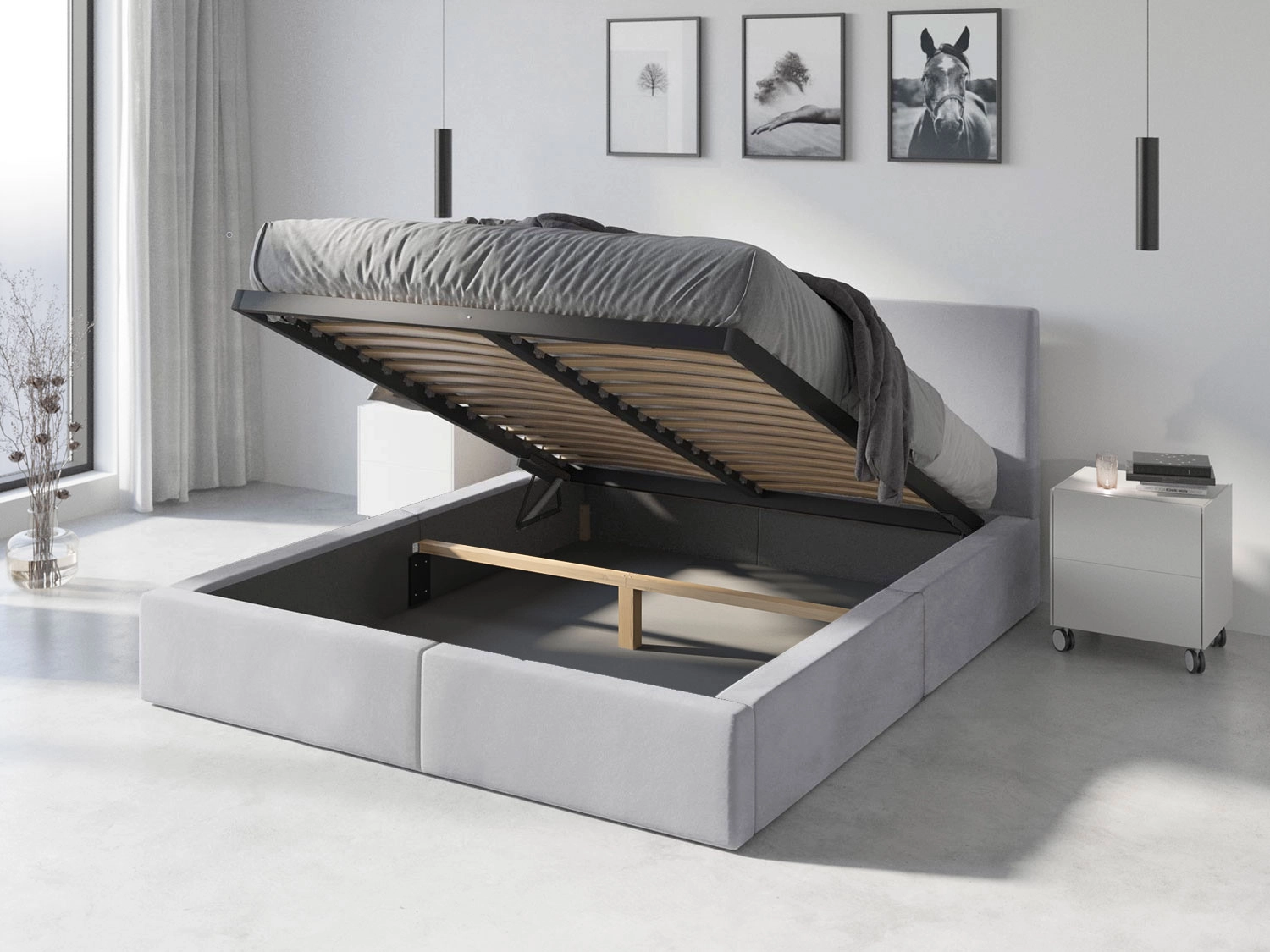 Es eignet sich sowohl als geräumiges Einzelbett als auch als komfortables Doppelbett, ideal für kleinere Wohnungen. Die gepolsterte Konstruktion macht es zur idealen Wahl für private Schlafzimmer, elegante Hotels oder Gästezimmer. Die Montage ist einfach und schnell – ganz ohne Fachmann.