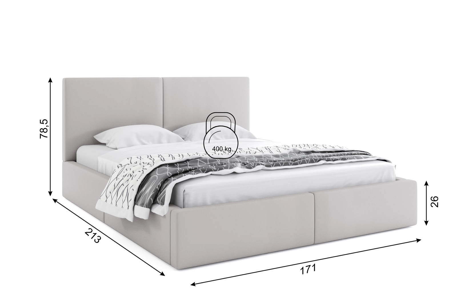 Es eignet sich sowohl als geräumiges Einzelbett als auch als komfortables Doppelbett, ideal für kleinere Wohnungen. Die gepolsterte Konstruktion macht es zur idealen Wahl für private Schlafzimmer, elegante Hotels oder Gästezimmer. Die Montage ist einfach und schnell – ganz ohne Fachmann.