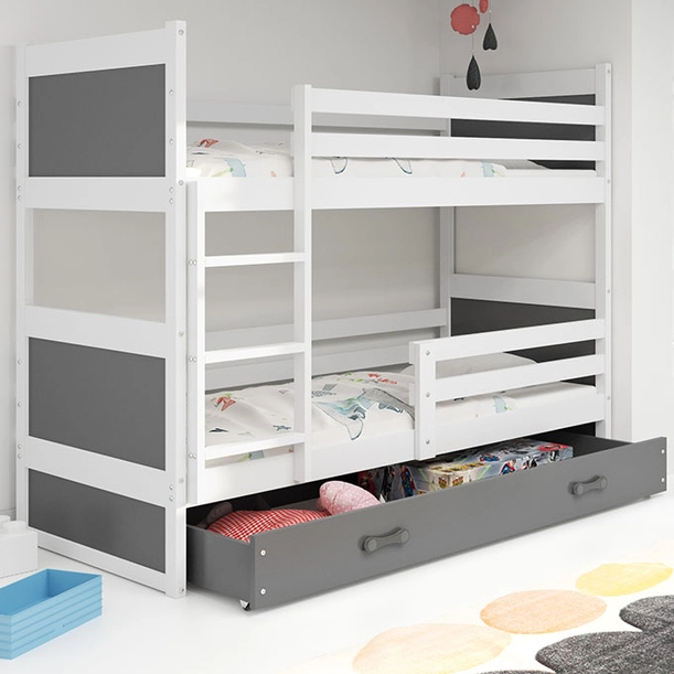 Stockbett für Jugendliche Richard, 90x200, mit Schublade, weiß/grau
